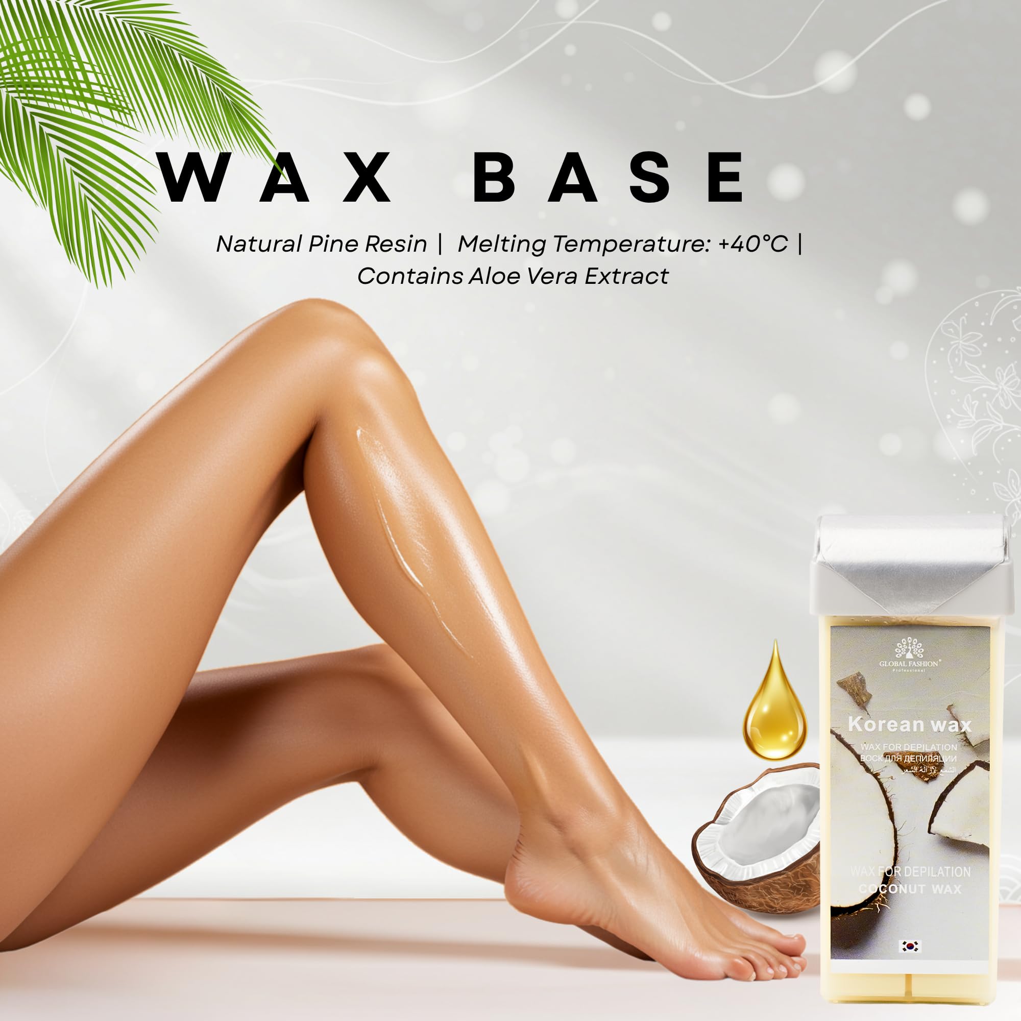 Global Fashion Roll-On Wax Cartridge 100ml – Coconut, Korean Depilatory Wax Refill for Smooth Hair Removal, Soft Wax Roller for Legs, Arms & Body
